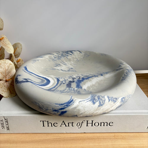 "Very beautiful marbled concrete bowl, useful as a catchall or just a piece by itself."