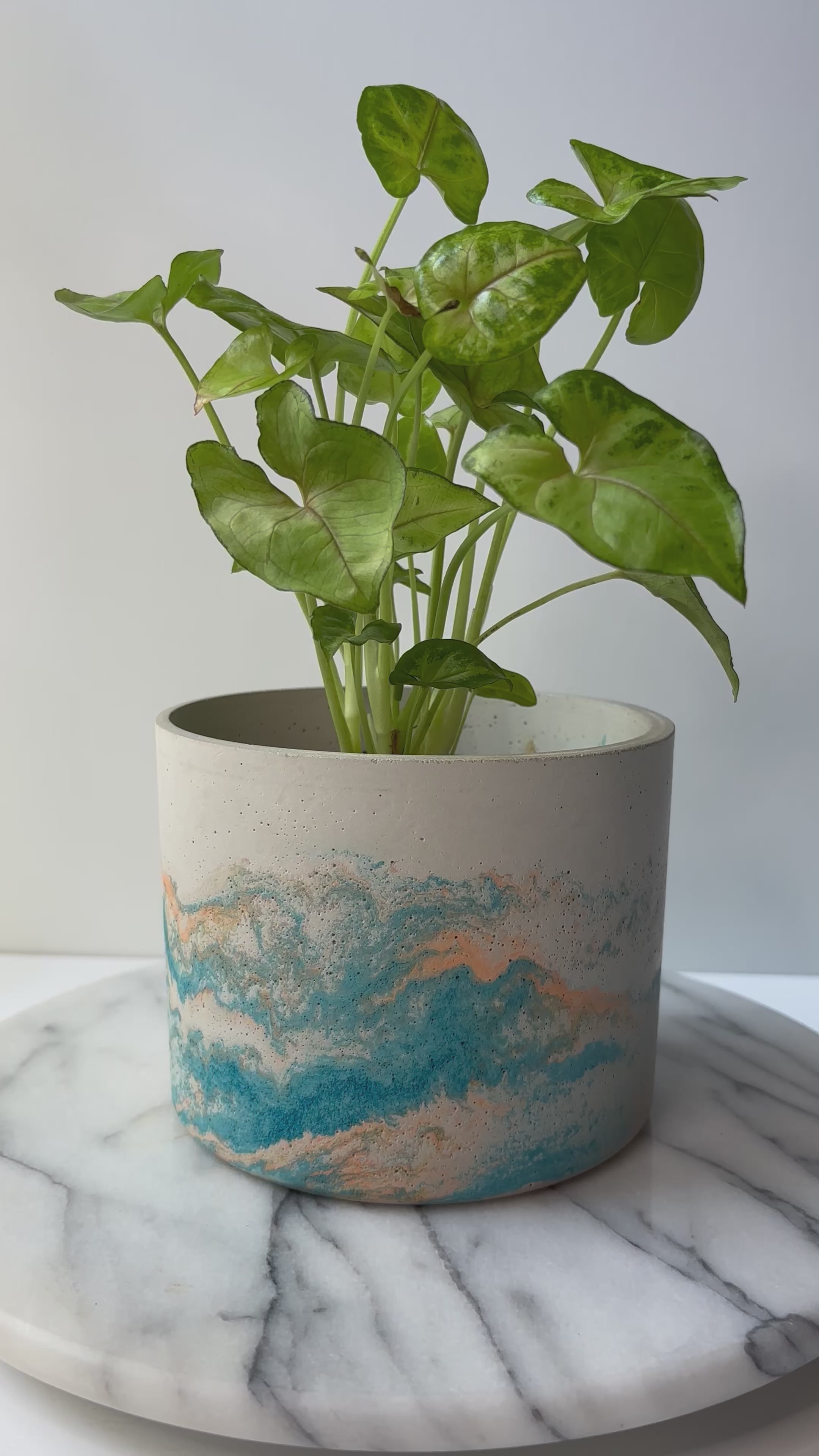 The cylindrical planter pot is crafted from robust concrete, giving it a modern and industrial aesthetic. Its smooth, matte surface showcases a subtle texture characteristic of concrete, adding a touch of rustic charm. Its sleek, cylindrical shape is versatile, making it a perfect addition to various decor styles, from minimalist to contemporary. The pot's neutral tone complements a wide range of plant colors and types, enhancing the natural beauty of its contents.